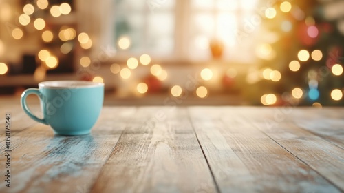 kitchen, counter, wooden, empty, christmas, decor, decoration, festive, holiday, warm, hot drink, cup, cosy, home, setting, light, bokeh, celebration, winter, seasonal, inviting, atmosphere, breakfast, dining, mug, beverage, table, design, interior, rustic, cheerful, family, gathering, warmth, organic, natural, tea, relaxation, comfort, joy, culinary, preparation, brunch, ambient, calmness, style