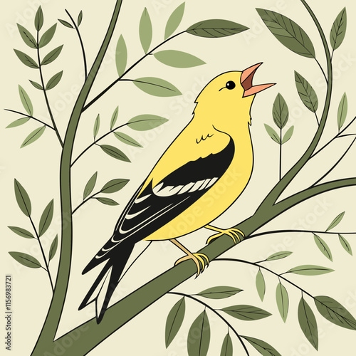 A cheerful American Goldfinch bird singing sweetly, perfect for nature lovers and bird-themed designs.