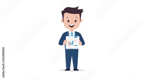 A cheerful businessman holds a report with a graph, showcasing positive data and growth, representing success and professionalism in a corporate environment.