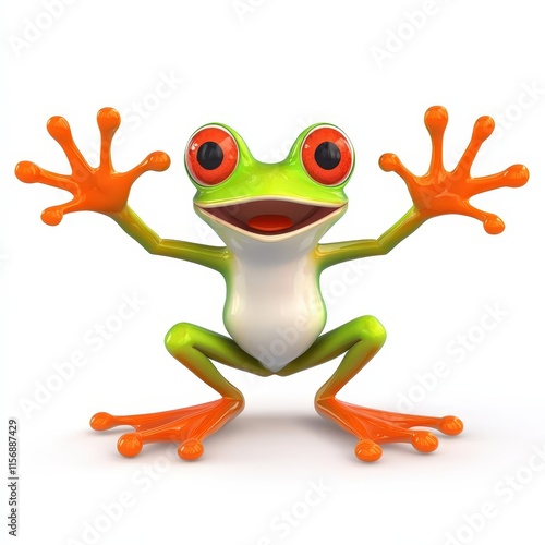cheerful, frog, cartoon, animal, character, three-dimensional, illustration, glossy, playful, isolated, white, background, green, nature, amphibian, cute, toad, vector, happy, fun, tropical, wildlife, smile, eye, comic, closeup, mascot, rainforest, beautiful, environment, art, slimy, tree, red, reptile, sitting, macro, wild, orange, pet, colours, fauna, humor, sticky