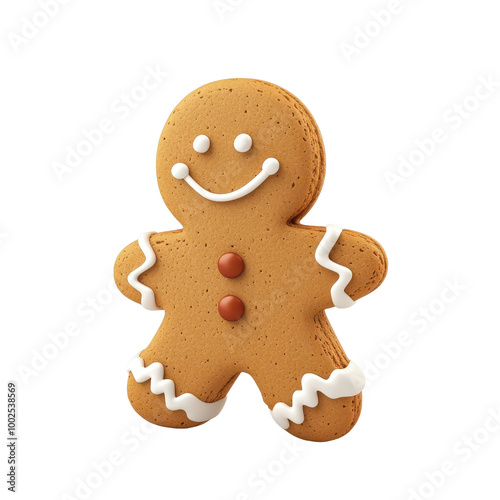 A cheerful gingerbread cookie man, decorated with icing and candy, perfect for festive celebrations and holiday baking., isolated on a transparent background.