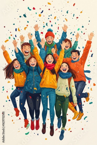 group, celebration, friends, oneness, happy, happiness, diversity, cheerful, joy, autumn, together, team, community, festivity, youth, colourful, fun, artwork, leaf, people, bonding, smile, smiling, positive, life, illustration, energy, gathering, support, vibrant, freedom, uplifting, excitement, celebrate, expressive, active, friendship, creative, spirit, joyous, nature, emotion, sunny, seasonal, hopeful, lifestyle, carefree