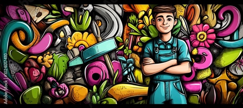 gardening, tool, flower, colours, nature, plant, cheerful, person, greenery, landscape, hobby, community, creativity, environment, growth, nurture, dirtied, earth, joy, vibrant, design, illustration, care, cultivation, spring, seasonal, flora, fauna, art, lifestyle, activity, passion, workshop, harvest, garden, arrangement, beauty, skill, maintenance, support, education, life events, enjoyment, relaxation, therapy, productivity
