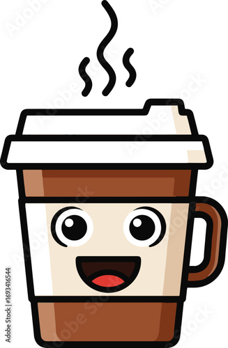 hot drink, coffee cup, cartoon, cute, illustration, hot drink, drink, beverage, happy, smiling, brown, white, steam, pixelated, vector, graphic, design element, food and drink, art, digital artwork, emoticon, icon, logotype, branding, marketing, animation, clip art, coffee break