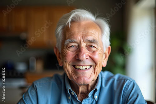elderly, happy, smiling, portrait, closeup, joyful, retirement, wellness, healthy lifestyle, content, cheerful, relaxed, friendly, warm, happiness, home, cosy, natural light, emotional, wisdom, confidence, golden years, peaceful, comfortable, indoor, grandfather, senior citizen, good health, retirement home, optimism, inspiring, laughter, kind