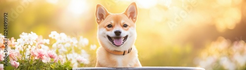 spring, background, shiba inu, dog, flower, sunlight, calmness, warmth, tail, playful, greenery, puppy, friendly, sunshine, canino, fluffy, social, vibrant, paw, fur, pet, relaxation, joy, dusk, expression, smile, cuddly, scenery, companionship, scene, loyal, happiness, snout, breed, charming, happy, portrait, leash, cute, animal, beauty, nature, bloom, garden