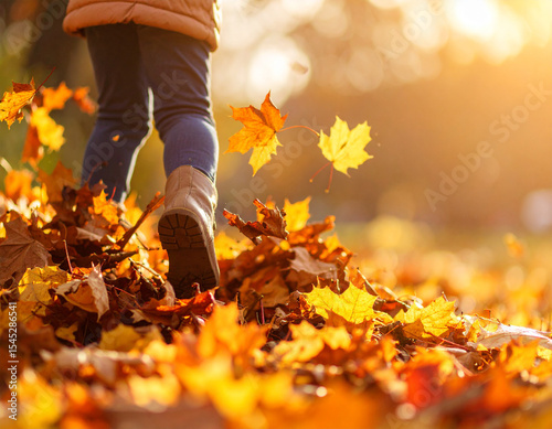 autumn, fall, children, walking, sunset, gold, leaf, boot, park, orange, foliage, warm, seasonal, maple, carefree, joy, nature, sunshine, cosy, crisp, playful, tree, closeup, footstep, vibrant, glowing, walk, peaceful, movement