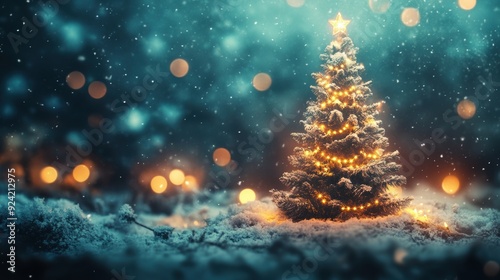 christmas, tree, lit, up, snow, celebration, background, winter, decoration, night, season, shiny, glowing, illuminated, gift, snowflake, abstract, blue, illustration, defocused, space, dark, light, star, shape, nature, humor, bright, glistering, greeting, closeup, design, december, lighting, equipment, fir, pine, ornament, forest, new, pattern, decor, wallpaper, gold, yellow, many-coloured, ornate