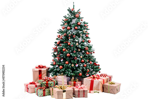 background, ball, ball, bell, box, celebration, christmas, christmas tree, decorated, decoration, design, festive, gift, gold, green, holiday, illustration, isolated, merry, ornament, present, red, season, seasonal