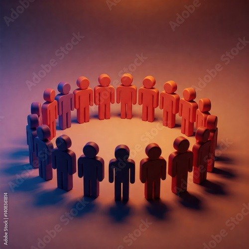 people, circle, oneness, red, figure, standing, group, concept, symbol, teamwork, human, abstract, gathering, glow, lighting, community, form, identity, collective, art, model, ambient, solidarity, formation, symmetry, idea, social, plastic, surrounding, bonding, representation, connection, strength, geometry, equality, meeting, togetherness, minimalism, calm, society, arrangement, team, shape, inclusion, symbolic