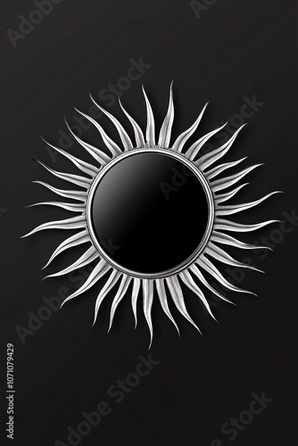 A circular mirror-like frame with rays extending outward like the sun
