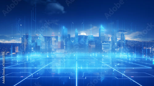 A city connected to holographic and digital technology of the future. internet of things