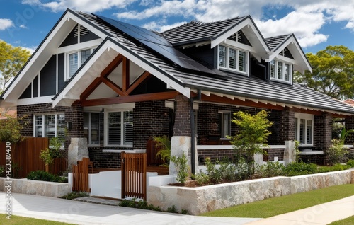 A classic and perfectly executed Federation-style house in Sydney, Australia with brown bricks, white trim on the windows and doors