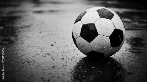 soccer, football, ball, game, sport, play, field, grass, ground, black, white, monochrome, texture, dirty, worn, old, classic, competition, athletic, activity, exercise, leisure, recreation, team, goal, victory, defeat, passion, energy, power, strength, skill, talent, practice, training, movement, action, dynamic, image, photo, picture, background, design, element, detail, surface, dark, shadow, light