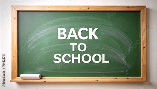 A classic green chalkboard with a wooden frame displays the message "Back to School" in white chalk, symbolizing the start of a new academic season and learning