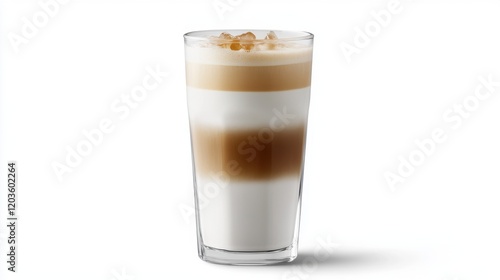 A classic iced latte with layers of espresso and milk, served in a tall glass.