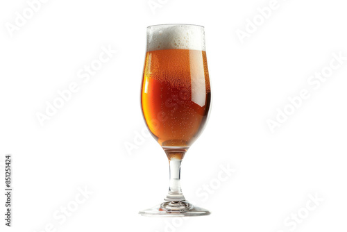 A classic pint glass filled with a refreshing lager, condensation droplets forming on the outside, isolated on white background.