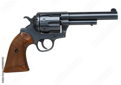 A classic revolver handgun with a wooden handle and metal frame, isolated on a transparent background