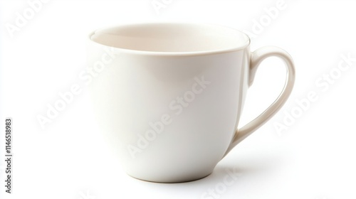 A classic white ceramic coffee mug with a clean, smooth surface and no patterns, perfect for versatile use, isolated on white
