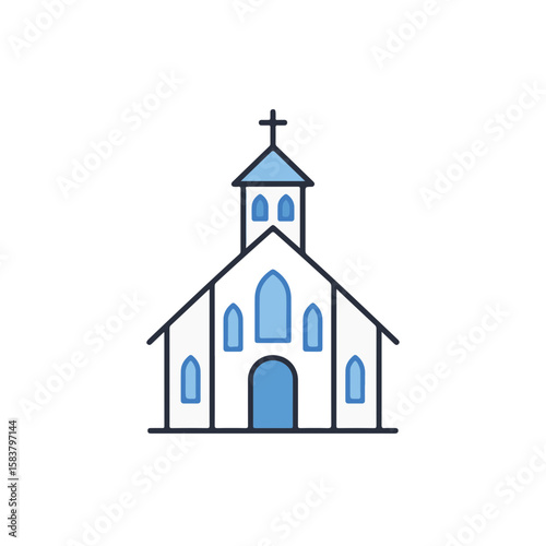 A clean and detailed image of a church with a cross on the roof.