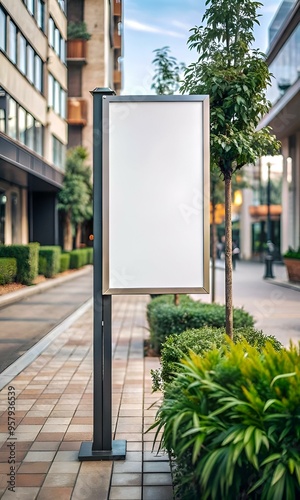 billboard, signs, blank, advertisement, advertising, street, urban, city, sidewalk, green, plant, greenery, tree, landscape, design, template, marketing, business, promotion, branding, visual, graphic, banner, empty, message, display, commercial, publicity, street art, signage, paseo, path, modern, clean, simple, minimal, neutral, professional, high-quality, photorealistic, placeholder