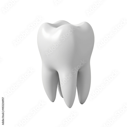 A clean, white tooth with a smooth surface and three distinct cusps.