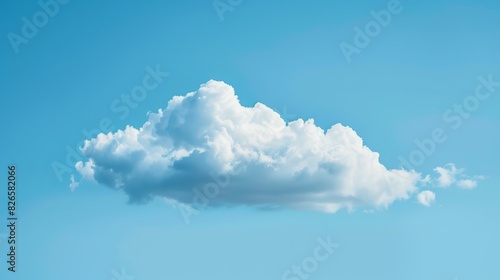 A clear bright sky with a fluffy white cloud formation in the center, against a clear blue background.