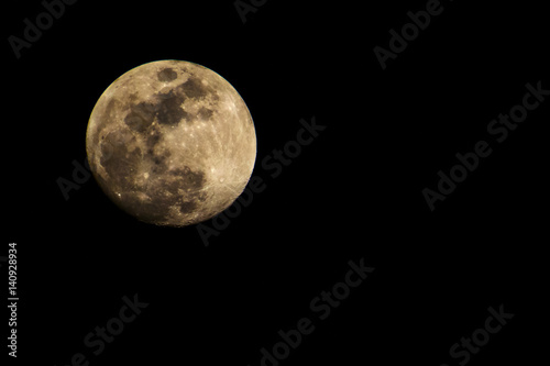 A clear golden moon with a lot of craters.