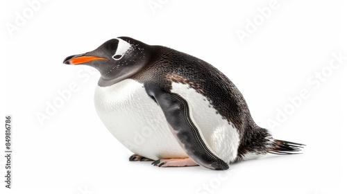 A clear image of a Gentoo Penguin isolated on a white background, showcasing its distinctive markings