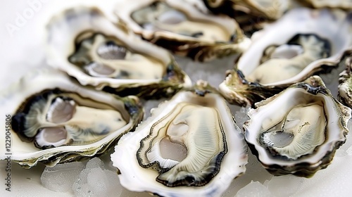 A Close - up View of Fresh and Juicy Oysters. These bivalve mollusks, with their rough, irregular shells, are a popular seafood delicacy