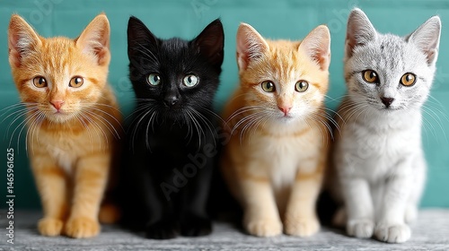 cat, kitten, pet, portrait, group, felino, domestic, cute, furry, adorable, whisker, eye, colours, sitting, looking, playful, inquisitive, young, curious, companion, family, nature, animal, texture, fluffy, paw, ear, nose, facial, expression, green, background, studio, domesticated, mammal, predator, tame, claw, wildlife, carnivorous, vertebrate, meow, purr, fur, kitten, calico, tabby, black