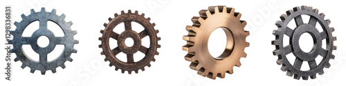 A close up image showcasing an arrangement of various metallic gears and cogs in different shapes sizes and colors creating a symmetrical and intricate industrial pattern
