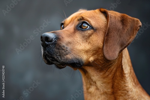 A close up of a dog with a black background