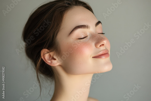 A close up of a girl's face with her eyes closed