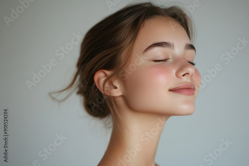 A close up of a girl's face with her eyes closed