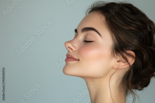 smile, woman, nose, health, cheek, hair, lip, shoulder, eyelash, ear, neck, flash, jaw, lipstick, make-up, gesture, happy, makeover, black, long, step, brown, art, layered, peach, portrait, fashion, fun, illustration, photo, beauty, face, model, skin, clean, make-up, eye, young, person, care, skincare, glamour, fresh, lip, natural, studio, closeup, spa, people