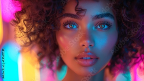 A Close up of a Woman With Curly Hair and Green Eyes Looking at the Camera - Generative AI