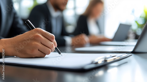business, hand, writing, notebook, office, professional, sharpened, modern, colleague, workspace, pen, document, closeup, table, paperwork, business meeting, corporate, teamwork, blurred, laptop, organisation, productivity, communication, strategy, planning, management, collaboration, creativity, idea
