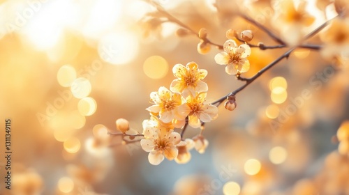flower, blossom, bloom, tree branch, spring, nature, beauty, delicate, sunlight, yellow, white, macro, bokeh, blurred, soft, sharpened, season, floral, closeup, botanical, bright, light, natural, garden, stem, detail, background, vibrant, plant, flora, sunshine, serenity, airy, semitransparent, freshness, fragile, harmony, growth, elegance, joy, awakening, texture, pattern, outdoors, organic, simple, graceful