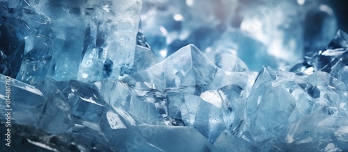 A close up of ice crystals and rocks glistening with frozen water in a copy space image