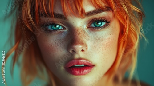 woman, girl, female, portrait, face, close, up, freckle, redhead, red, hair, green, eye, beauty, model, skin, complexion, lip, mouth, make-up, eyelash, eyebrow, gaze, look, expression, intense, vibrant, colours, light, shadow, style, fashion, artistic, photo, image, visual, aesthetic, stunning, captivating, allure, charme, pretty, attractive, gorgeous