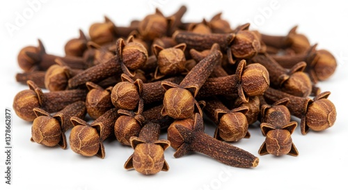 clove, spice, dried, aromatic, favor, seasoning, ingredient, cooking, food, herb, fragrant, brown, culinary, natural, organic, macro, closeup, still life, white background, pile, condiment, traditional, cookery, healthy, plant, aroma, pungent