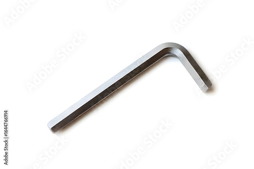 allen wrench, tool, silver, metal, hardware, isolated, white background, studio shot, closeup, hexagonal, fastener, repair, construction, bricolage, mechanic, workshop, equipment, instrument, object, single, plain, minimalist, industrial, engineering, maintenance, fix, tighten, loosen, bolt, screw, hand tool, steel, chrome, shiny, reflective, angle, precision, utility, professional, technical, metallic