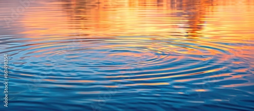 A close-up image of a lake with water reflecting the golden sunset sky, featuring a textured ripple pattern of blue hues, perfect for a copy space image.