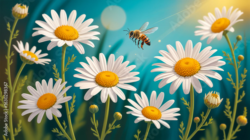 flower, daisy, nature, summer, spring, chamomile, chamomile, floral, plant, flower, sky, beauty, sun, field, yellow, blossom, meadow, bloom, vector, grass, illustration, seamless, season, garden