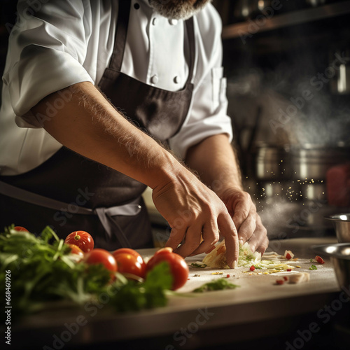 A close-up of a chefs hands preparing food