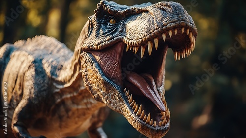 dinosaur, teeth, tongue, mouth, open, sharp, long, skin, textured, detailed, eye, visible, background, blurred