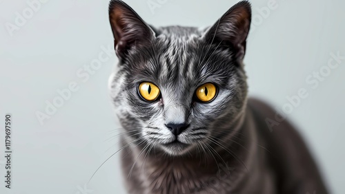 cat, kitten, felino, pet, animal, portrait, closeup, grey, fur, eye, yellow, whisker, ear, domestic, cute, adorable, curious, playful, calm, friendly, expression, soft, charming, alert, fluffy, beautiful, mammal, gentle, elegant, graceful, sweet, lovely, natural, indoor, sharpened, paw, nose, face, portraiture, background, minimalist