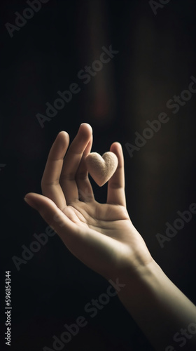 A close-up of a hand gently holding a small, heart-shaped object. The heart is made of a soft, textured material and is slightly out of focus, suggesting a dreamy or nostalgic atmosphere.