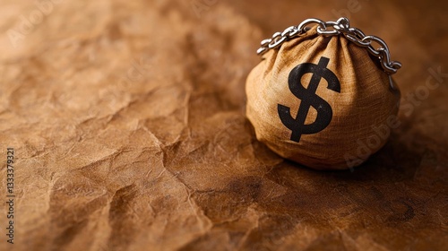 A close-up of a money bag with chains symbolizing wealth and restriction.